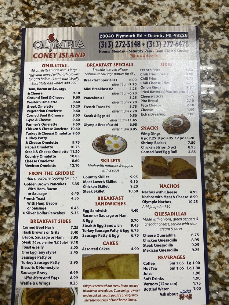 Olympia Coney Island invites guests to experience a blend of classic American diner fare and the warm hospitality characteristic of Detroit's vibrant culinary scene. Situated on Plymouth Road in Brightmoor, this burger restaurant serves as a welcoming haven for families and individuals alike. The atmosphere is casual yet inviting, making it an ideal spot for brunch with friends or a quick meal on the go.